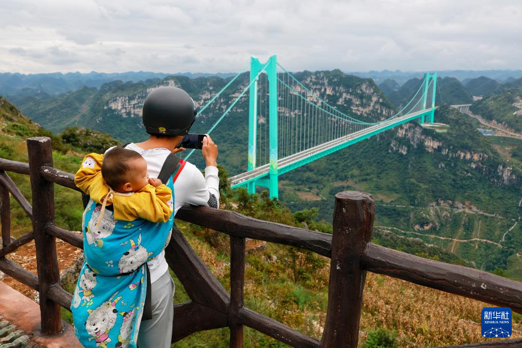 9月27日,当地人带着孩子在后面参观了桥梁。 9月27日,许多人到达了吉图豪省蒙特江谷海岸,并参观了江山峡谷桥的桥梁,该桥将正式完成,并将在9月28日向交通开放。桥的总长度为2,890米,其主要区域为1,420米。目前,它是世界山喉咙中最大的钢制钢制钢桥。桥盖为垂直于水面的625米,这使其成为新世界中最高的桥梁。照片:新华社Liu Xu Communications Agency记者