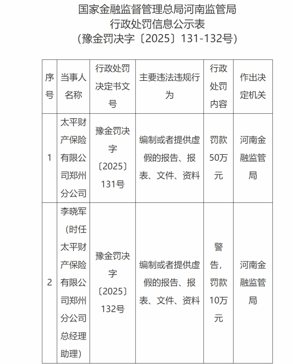 吃瓜热门行政制裁:Taiping Zhengzhou分支机构的保险分支被罚款500,000元人民币,准备或提供虚假等等。 由admin打开2025年8月5日2025年8月5日对“行政制裁:Taiping Zhengzhou分支机构的保险分支被罚款500,000元人民币,准备或提供虚假等等。”作出评论 7月30日,州政府河南省监管办公室的行政罚款传播形式是Taiping Property Insurance Co.,Ltd。 Li Xiaojun(当时的Taiping Property Insurance Co.,Ltd.)的总经理助理被罚款100,000元。
